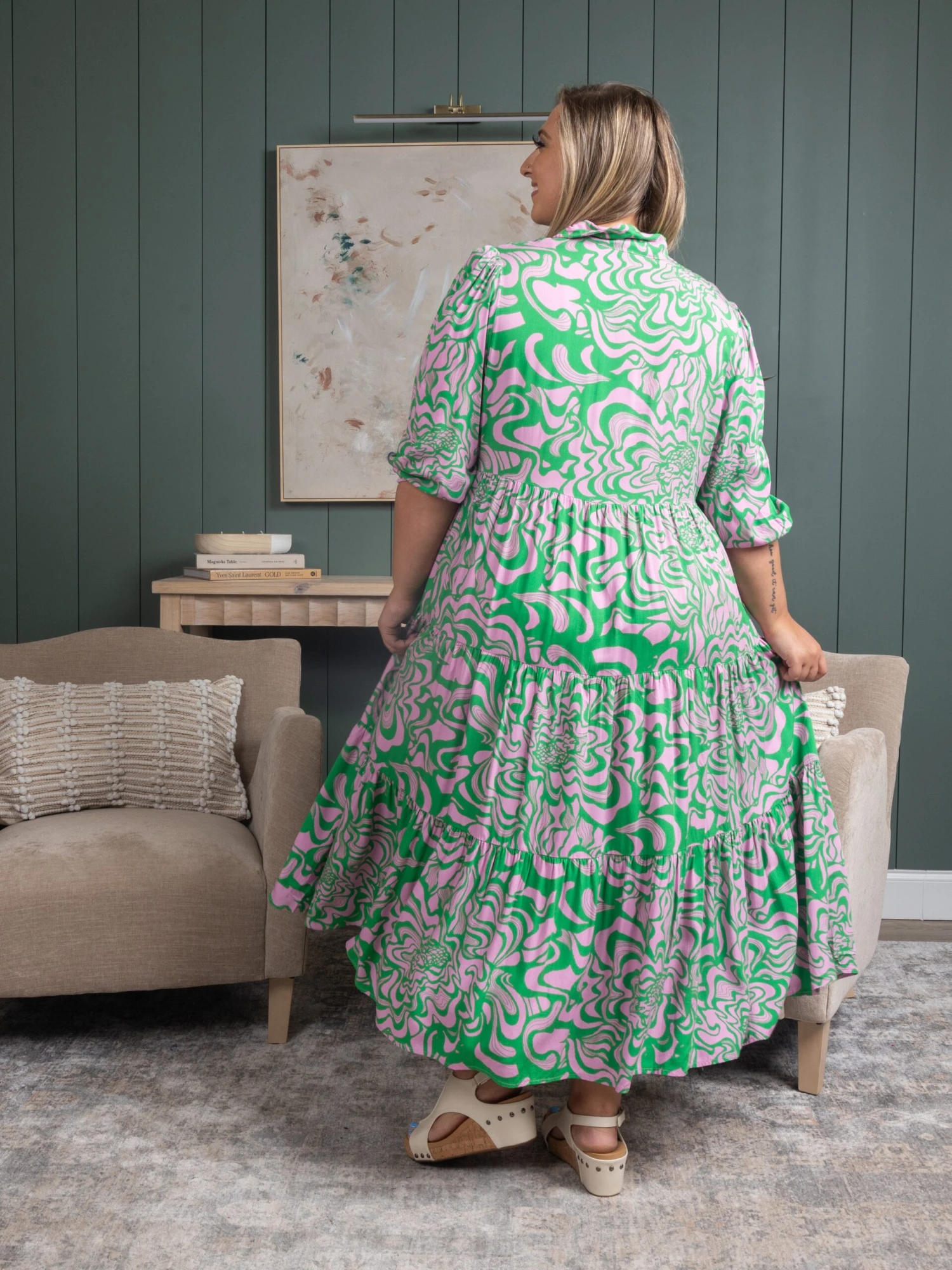 Features: Split Neck, 3/4 Sleeves, Printed, Collar