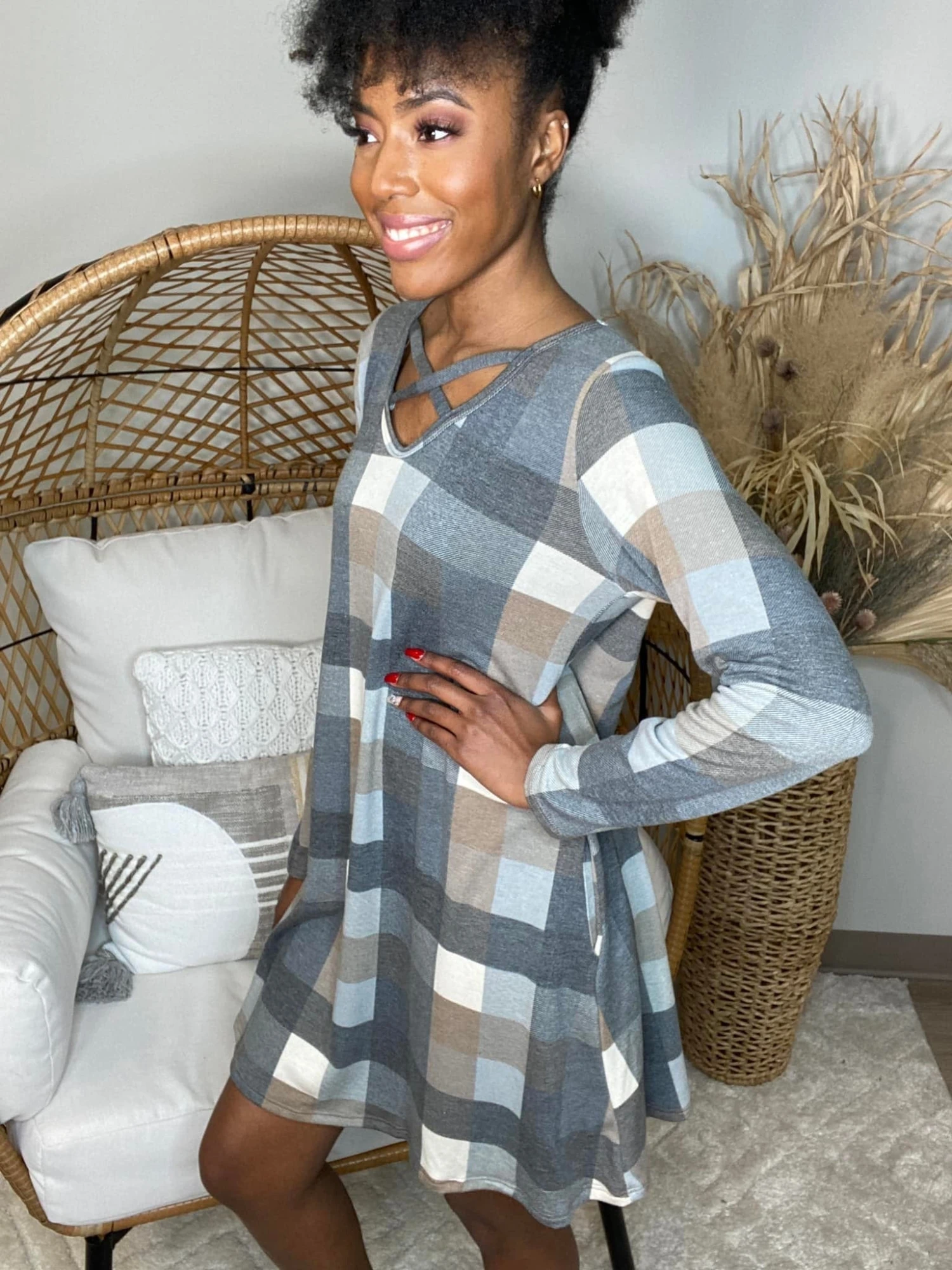 The “Believe In Me Dress” has arrived! This dress with the plaid print is super cute! The v-neck with the crisscross detail is so trendy! The best part is, it has pockets! Be sure to snag one before they sell out!