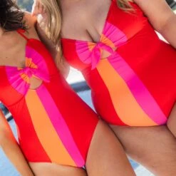 Features: Color Block, Ribbon, Cutout Front, Tie Neck
