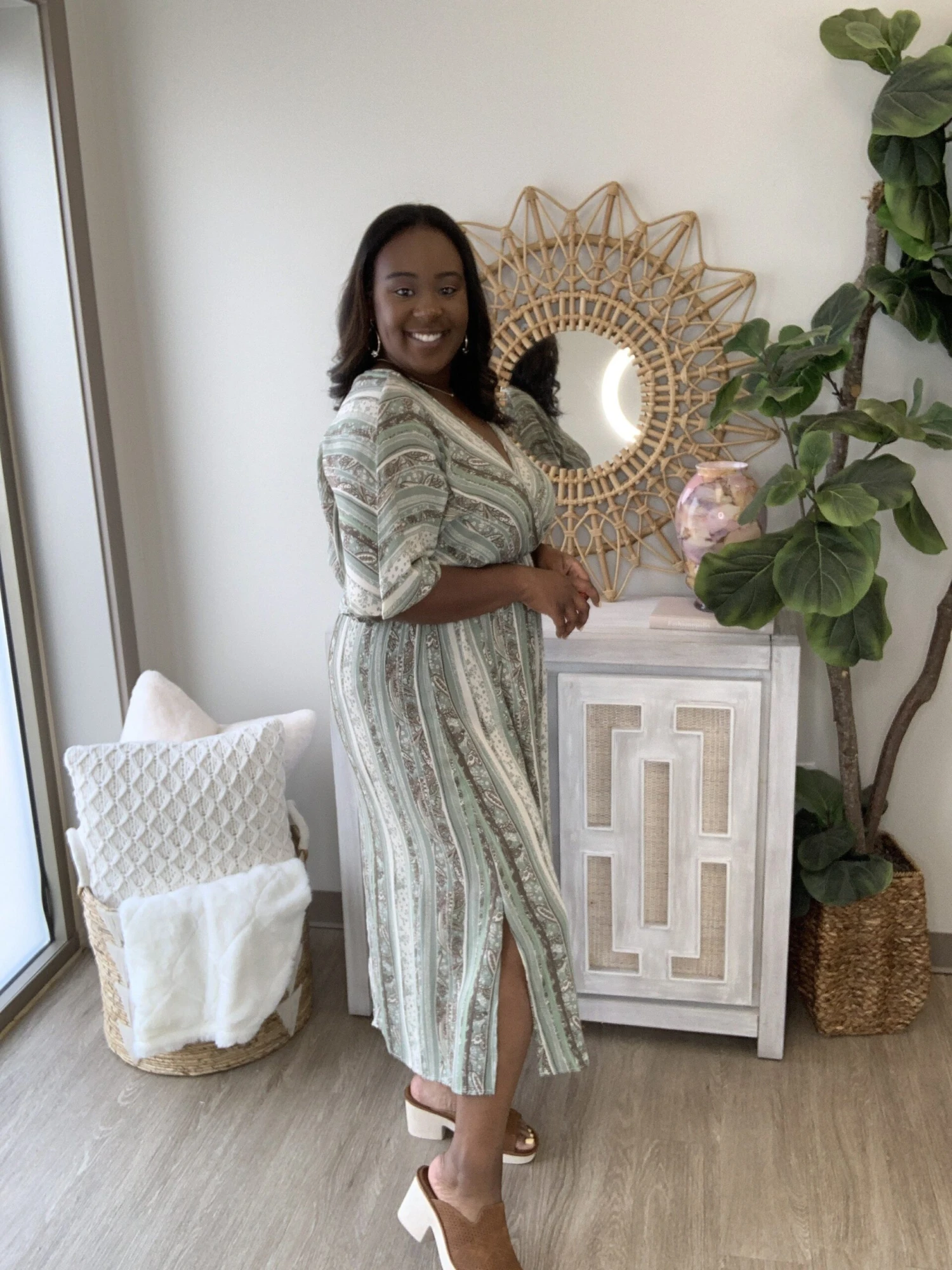 Emry: 5’5 L-XL in tops and dresses, size 14 in bottoms.