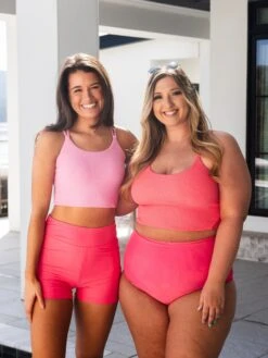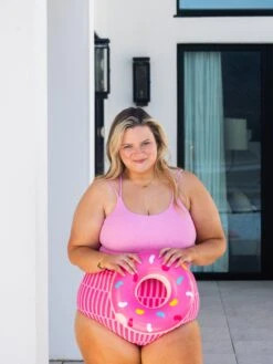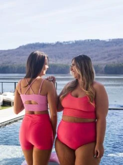 If you need one swim top, it’s this one! She is going to keep everything in place while still being SO comfy! The ribbed material + adjustable straps make this one. For sizing, go with whatever size you wear in a sports bra! Don’t overthink it. If you aren’t fuller busted, you can get away with sizing down for a more snug fit. Maddy is a 36A and could do an XS in this if it was offered.