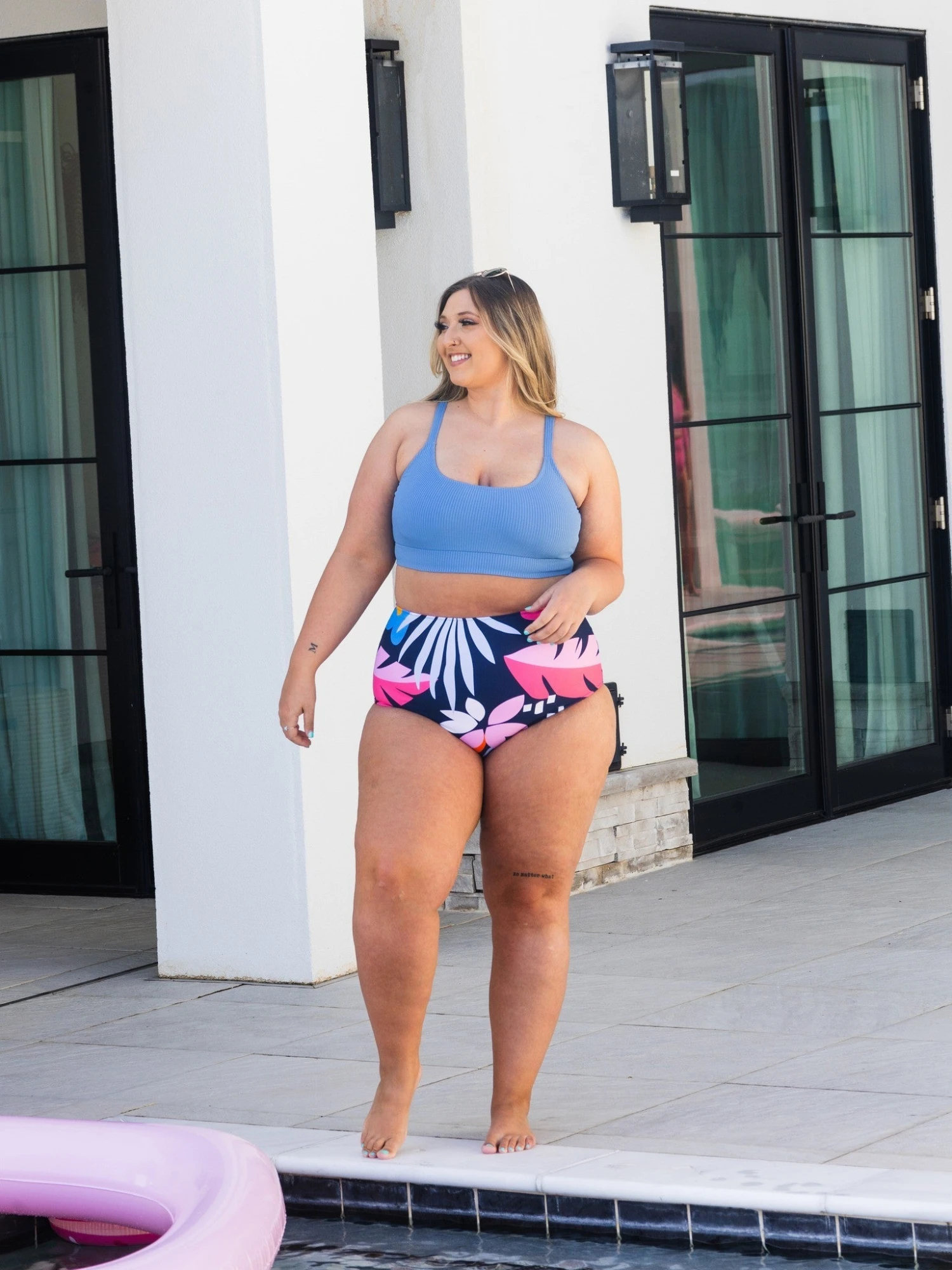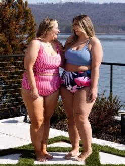 Maddy is in a small, Sam is in an XL, Erin is in an XL. This top is super flattering and comfortable. The fit is true to size and allows for movement while keeping everything in place.