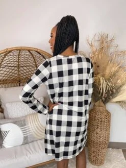 Features: Long Sleeve, Buffalo Check Knit