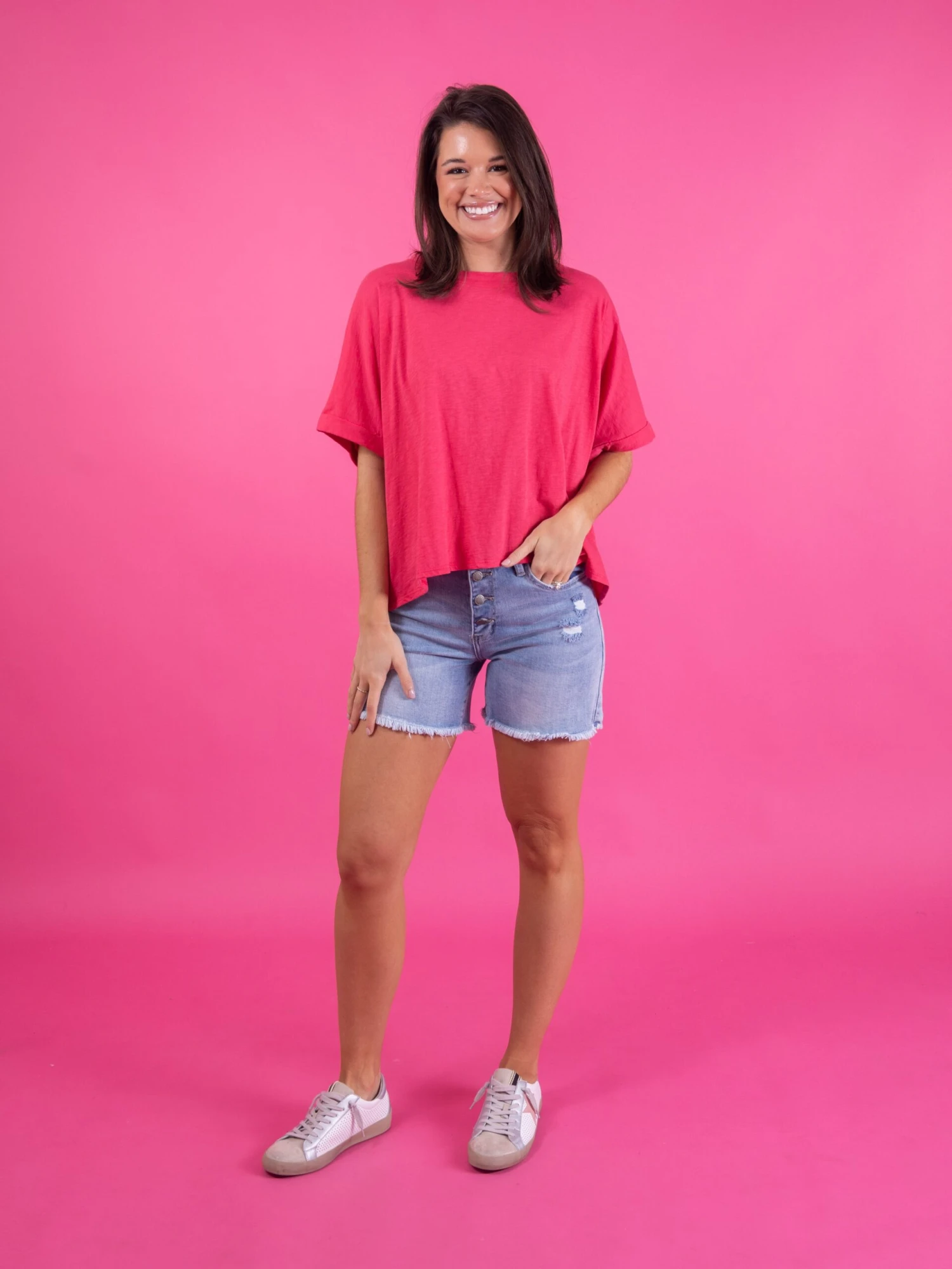 Features: High Rise, 4 Button, Frayed Hem