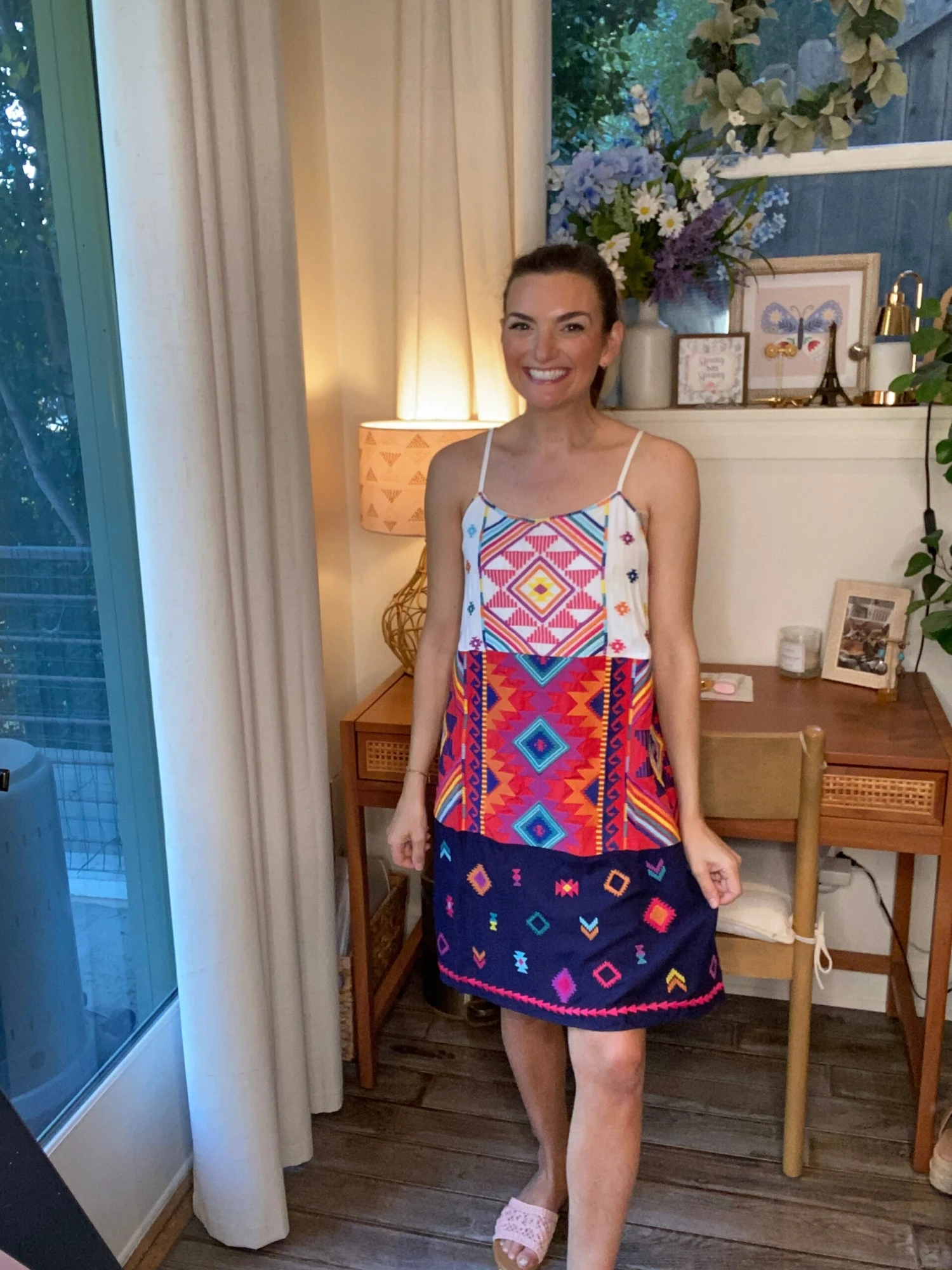 Materials: Self/Contrast- 100% Rayon/ Lining- 100% Polyester
