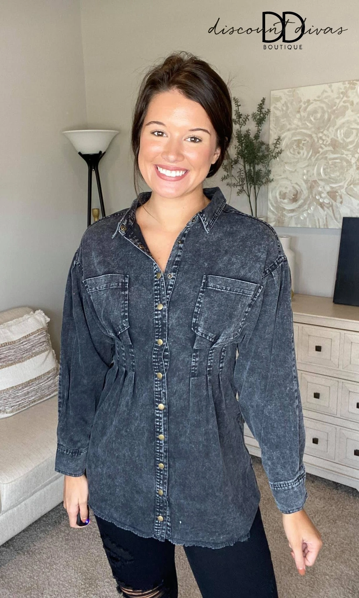 The “Fate Found Us Shirt Dress” has arrived! This super cute summary down shirt dress is a must-have! The oversized sleeves and raw hem are super cute! The dark washed denim look is perfect for any season! Be sure to snag one while you can!