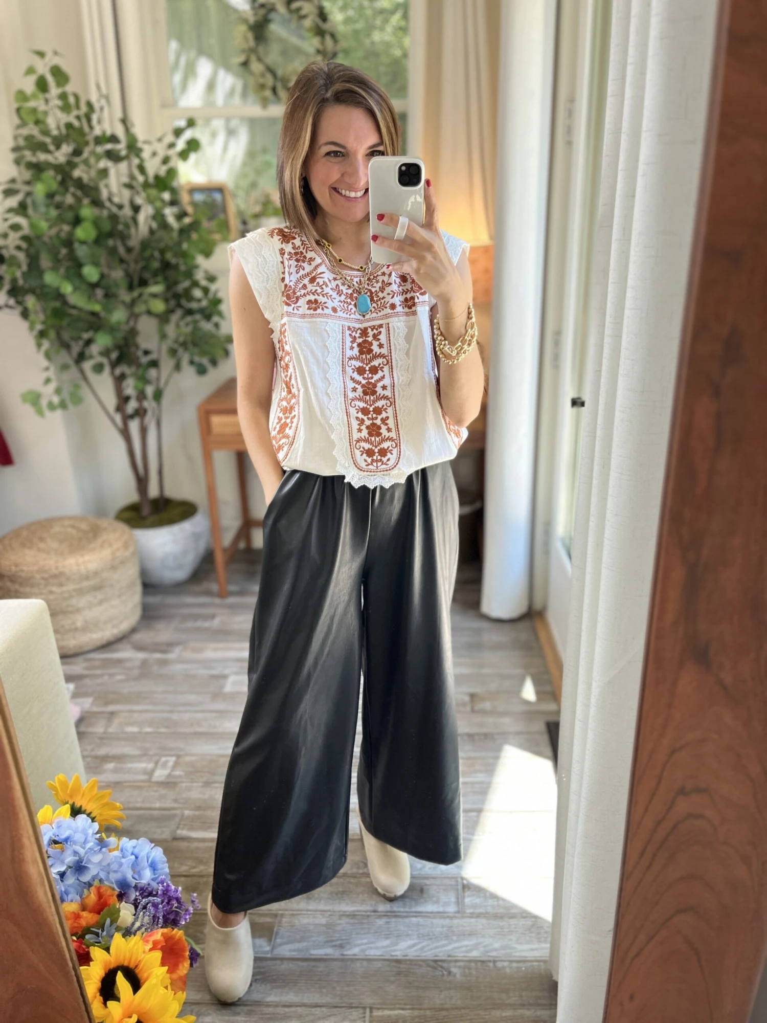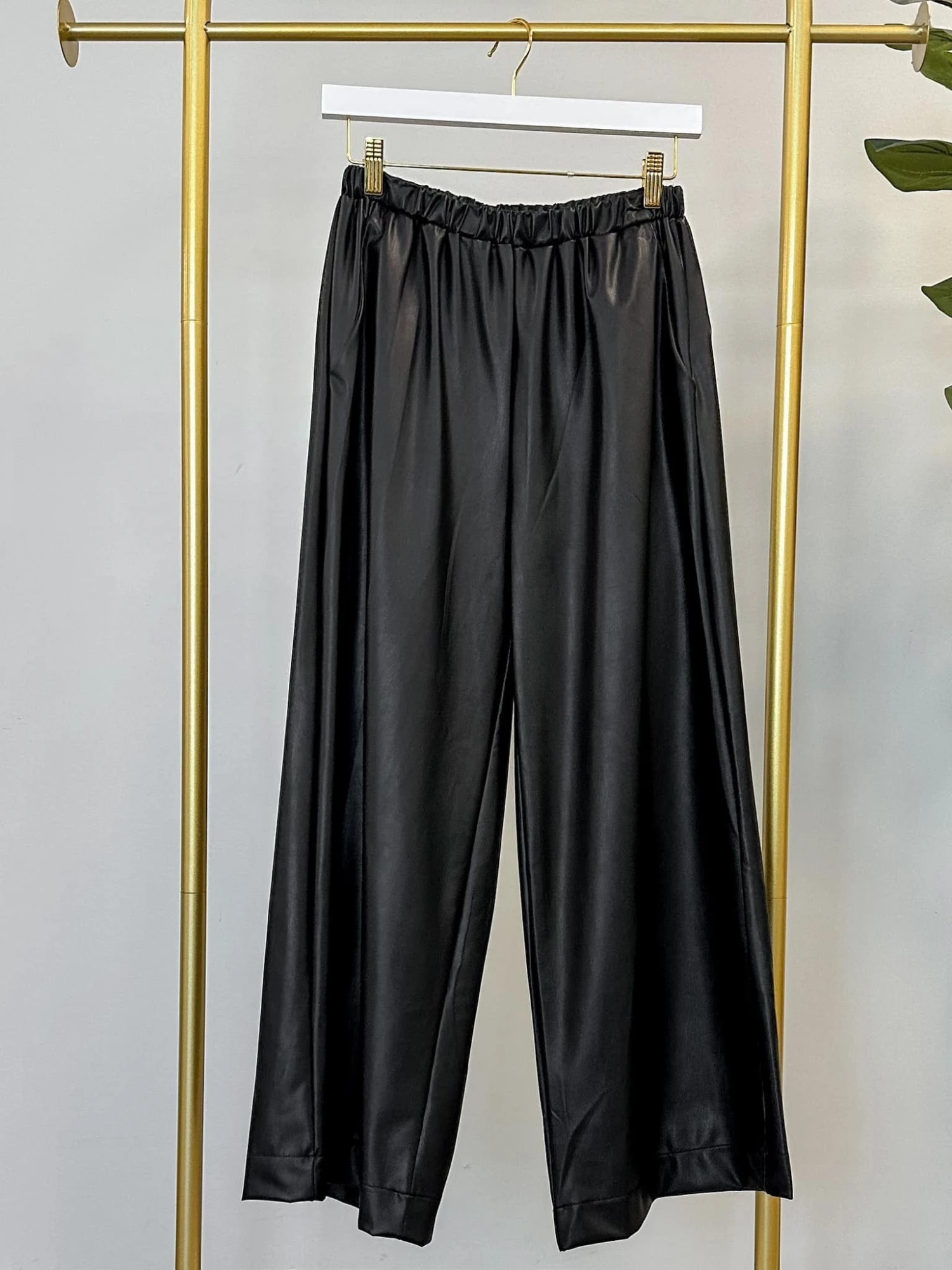 Features: Palazzo Pants, Elastic, Faux Leather