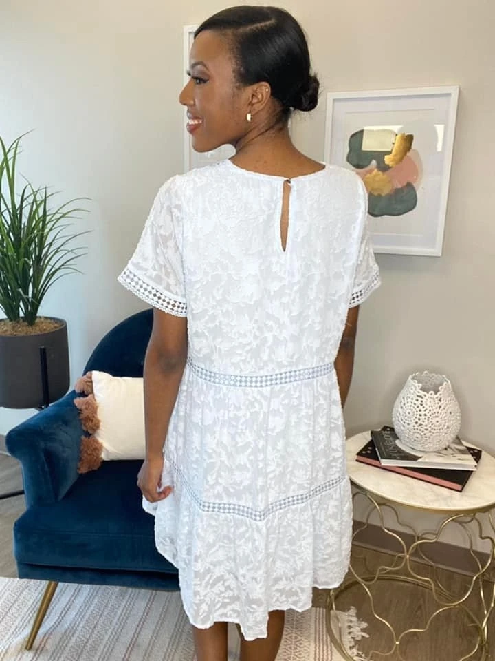 The “Go With The Flow Dress” has arrived! This jacquard tiered dress is calling your name! Perfect for spring and summer looks, this one is an absolute must have! Pair with sandals and you are all set!