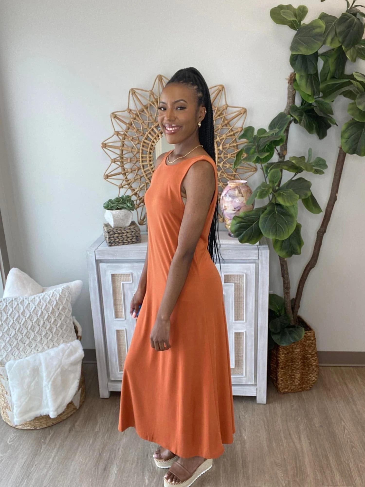 The “Happening Fast Dress” has arrived! This maxi dress is a must have! With a gorgeous back detail, you cannot go wrong! So stylish, this one is perfect for the summer! Snag one before they sell out, you know they will!