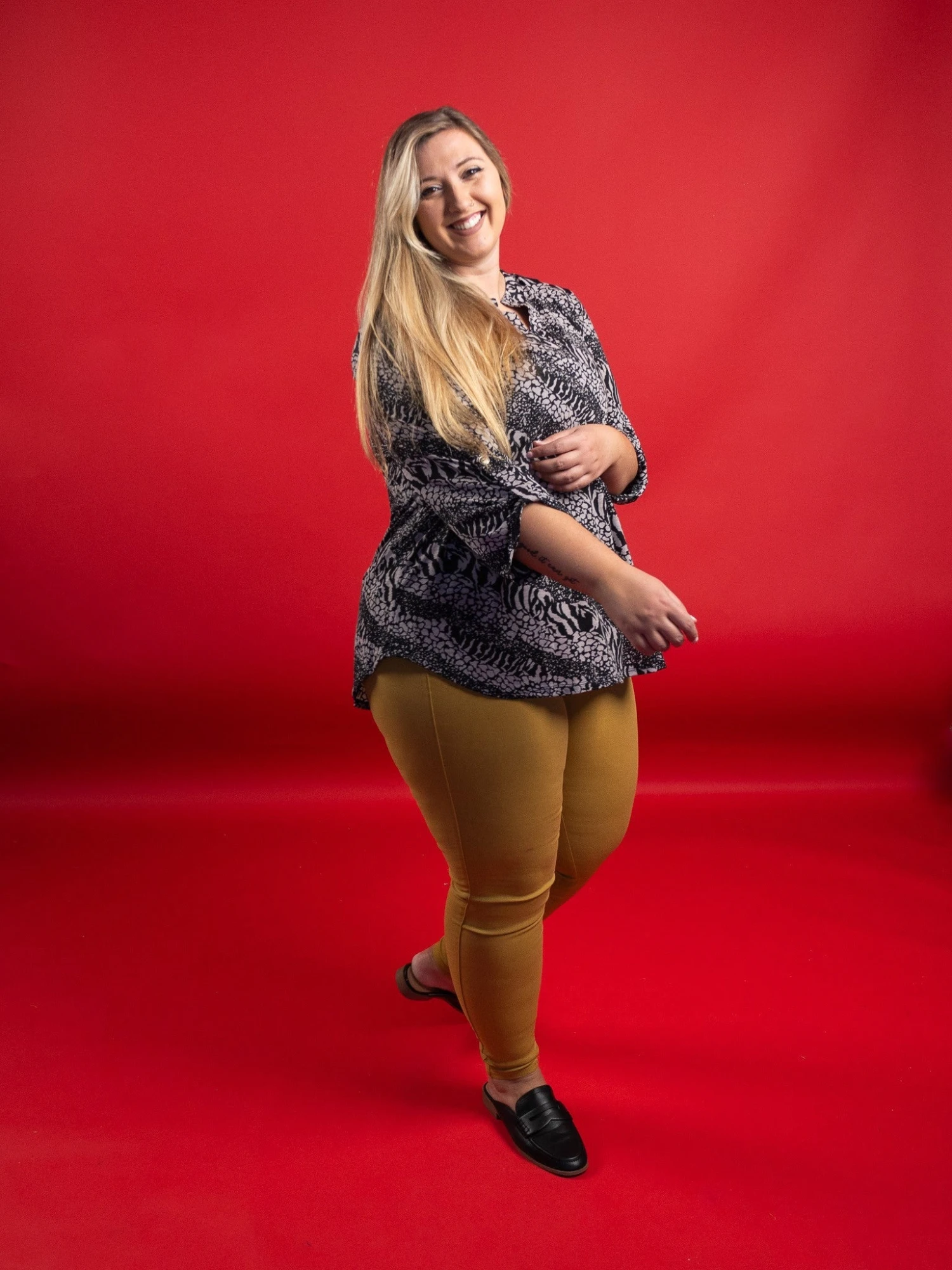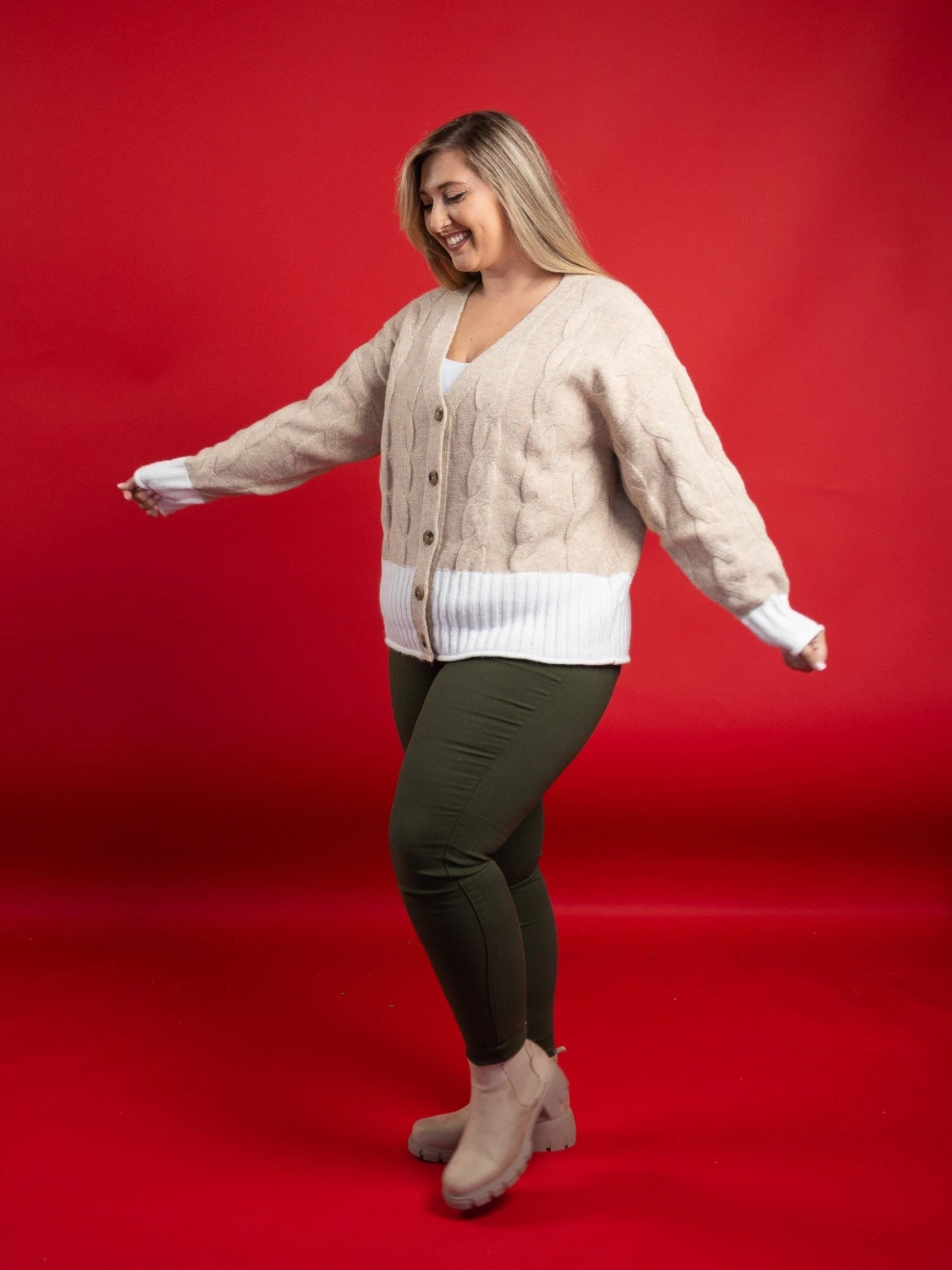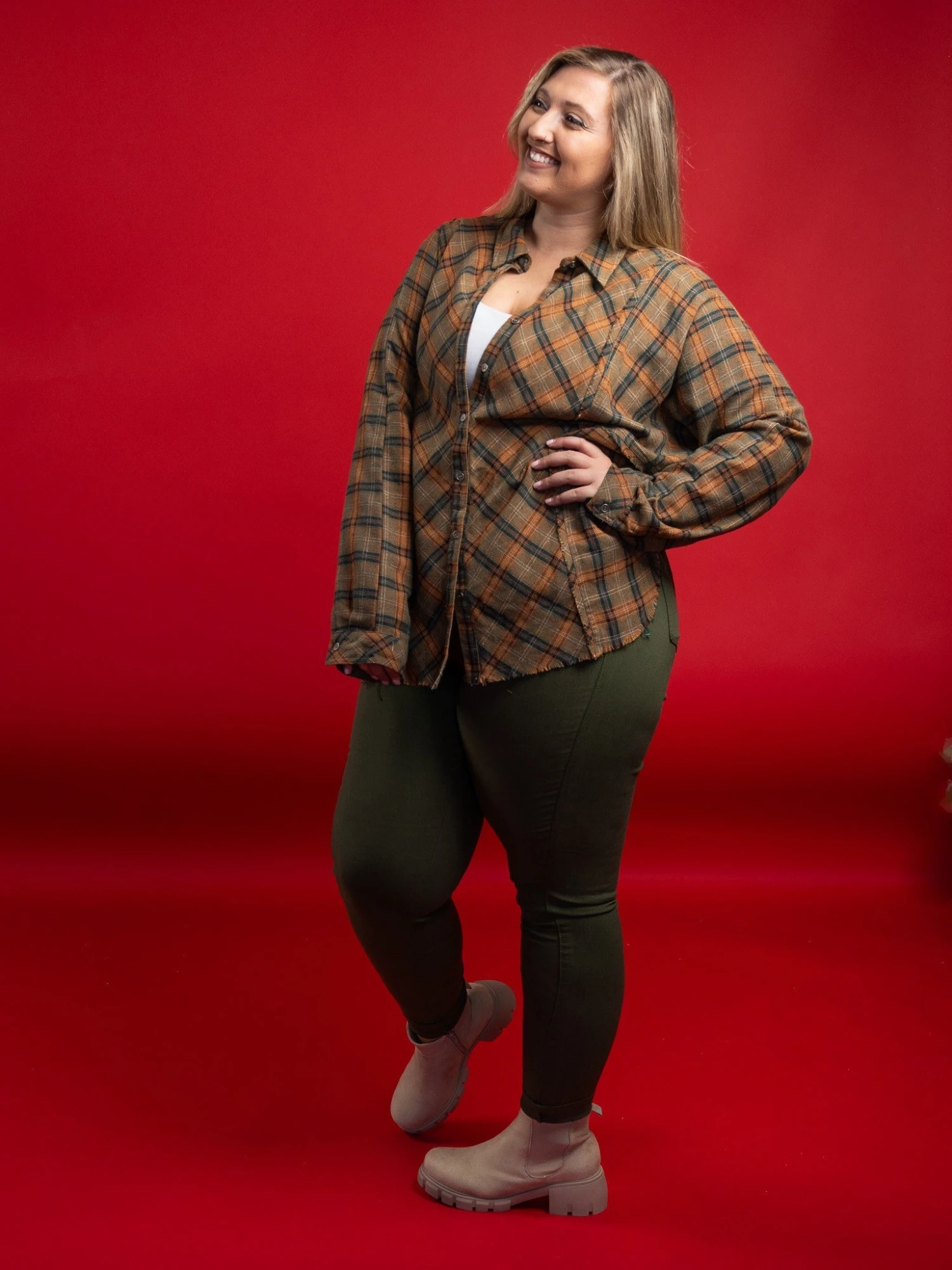 Erin is 5’9, typically 14-16 in denim, Large-X-Large in tops, 36C bra. Wearing size XL
