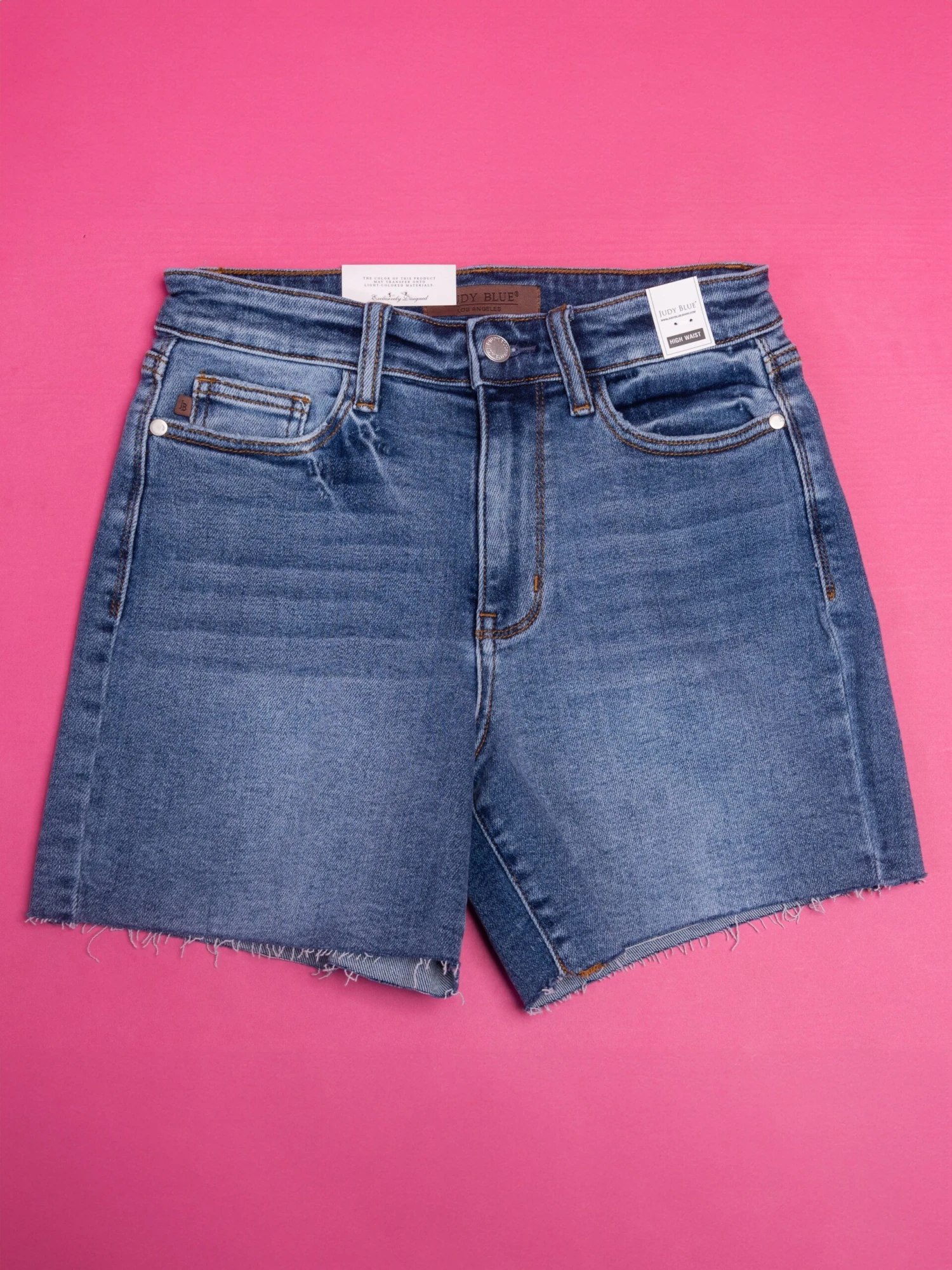 Features: High Waist, Rough Hem, Embroidered Pockets