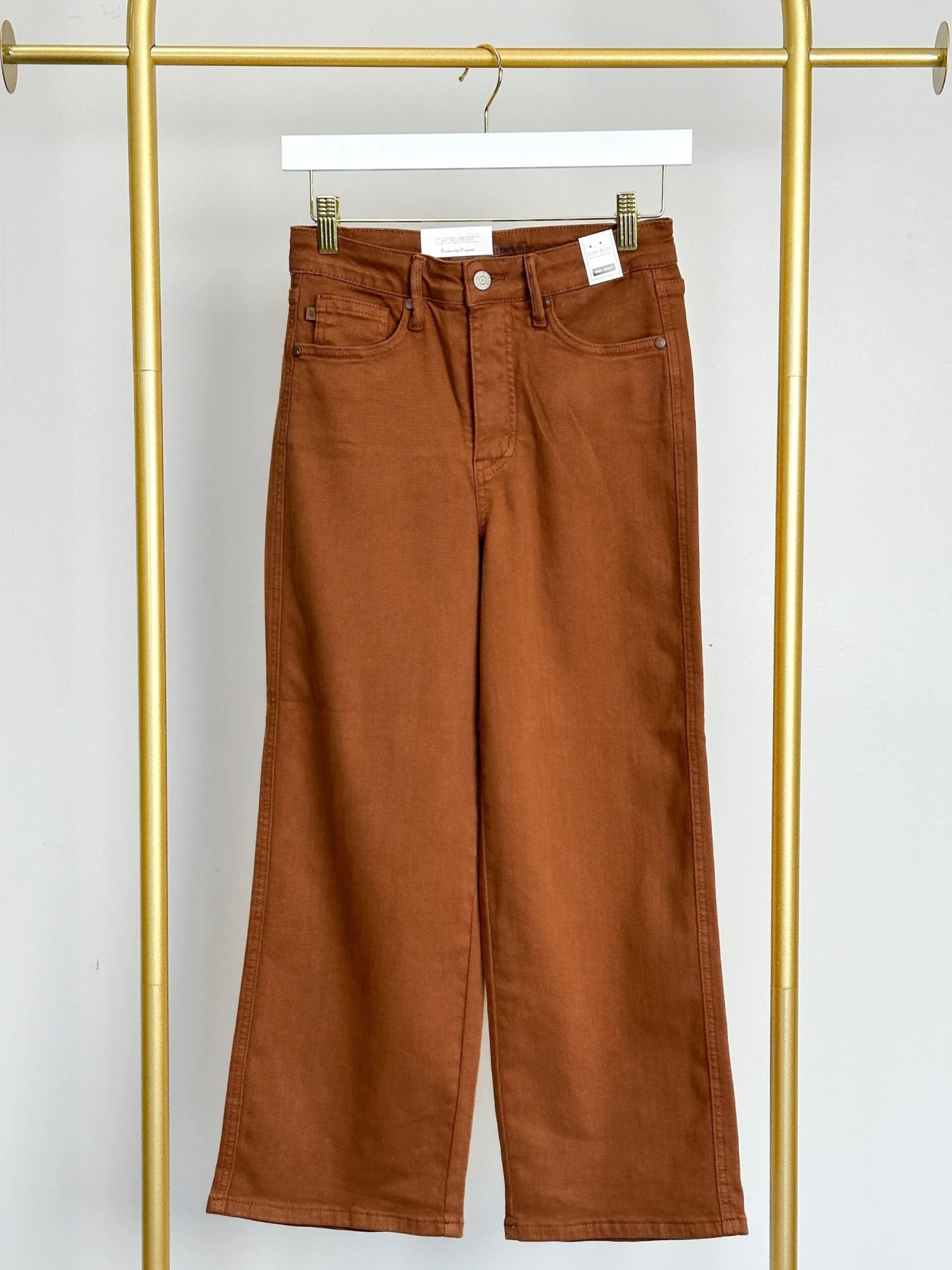 Features: high waist, tummy control, garment dyed, wide cropped leg