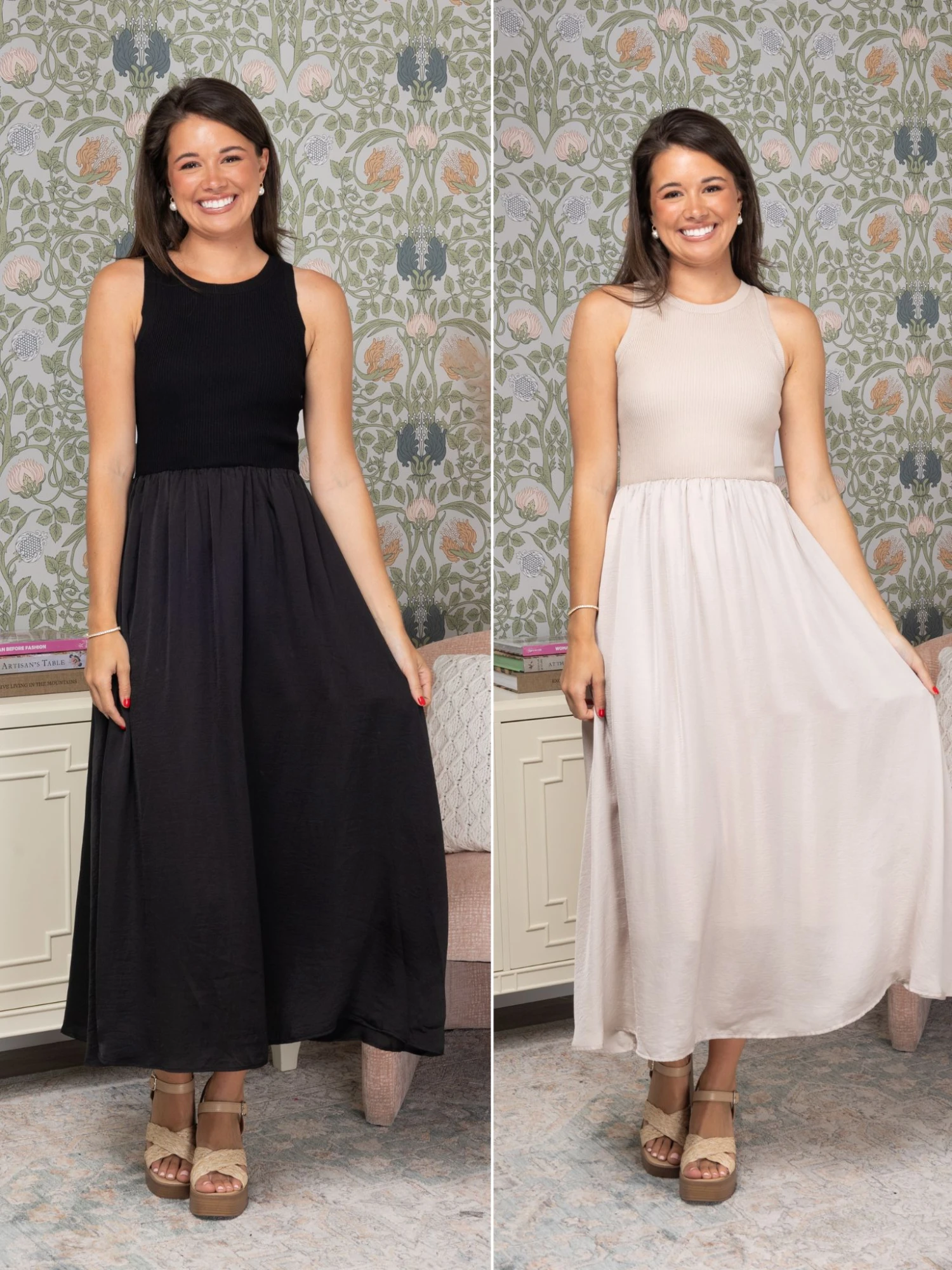 Features: Knit Mixed Media Sleeveless Midi Dress