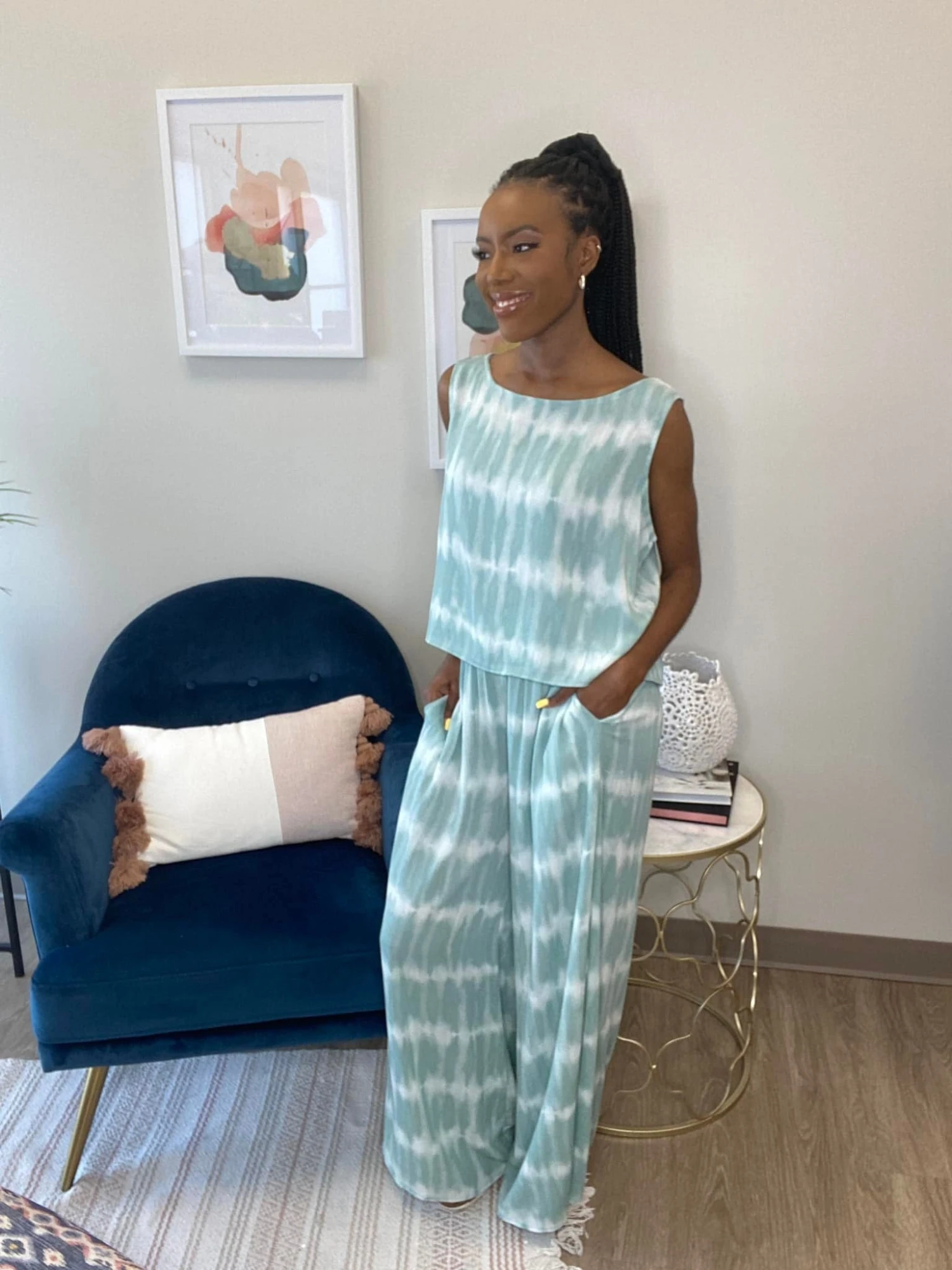 The “Makes It Set” has arrived! This tie dye crop top and pants set is a must have! So flowy and stylish, you know you want to snag one of these! Perfect for your summer beach vacation, you cannot go wrong!