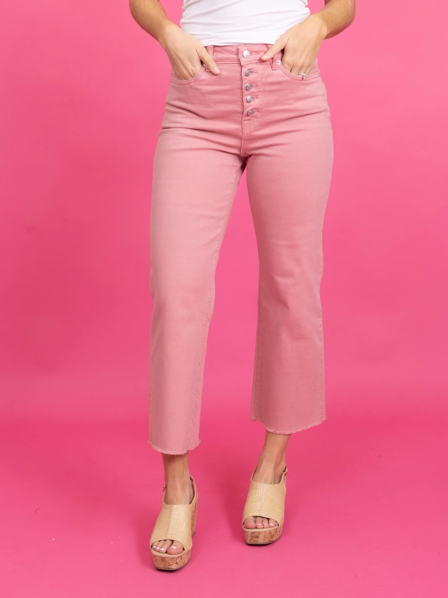 Features: High Rise, 5 summary, Wide Leg, Raw Hem