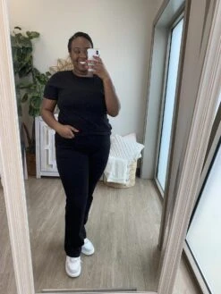 Erin is 5’8, 36C bra, typically wears size L/XL in tops and 14/16 in denim. Wearing size 15