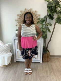 The “Much Better Dress” has arrived! This stripe and floral mixed print dress is calling your name! With ruffle details, this one is perfectly stylish! Pair with sandals for the best look! Snag one in time for the summer!