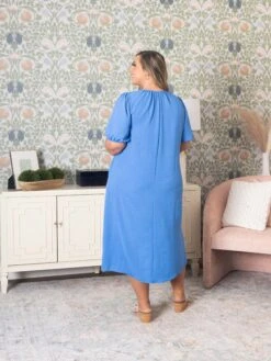Features: Peasant Sleeve ,Split Neck, Midi Dress