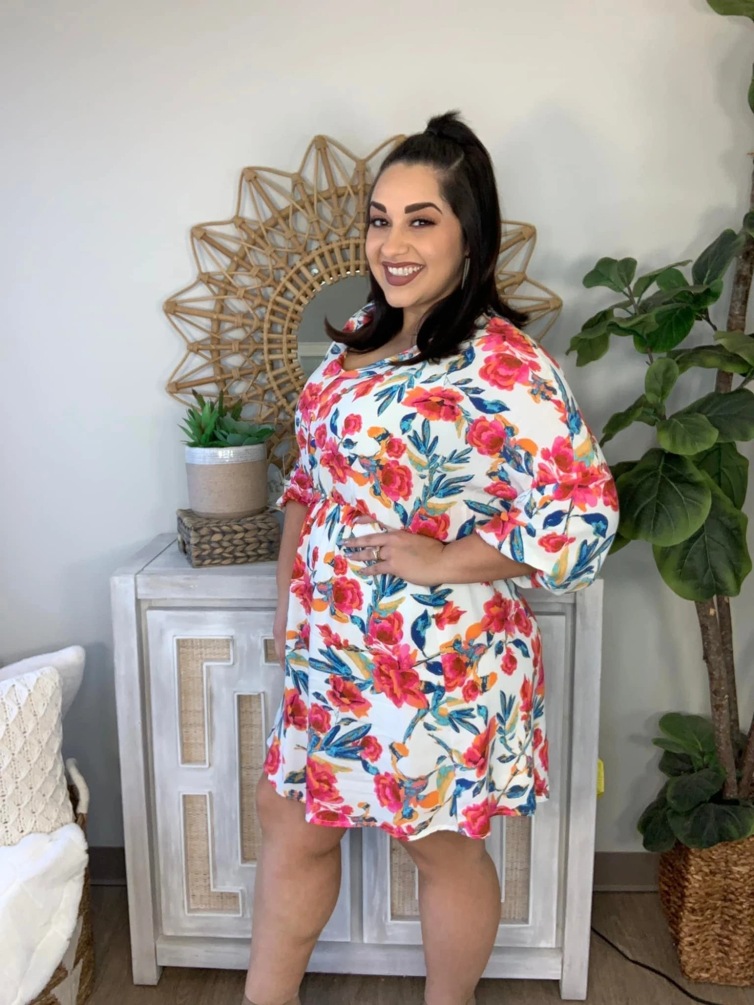 The “Personally Perfect Dress” has arrived! This adorable floral print dress is just what you need! You can’t go wrong with the dolman sleeves and elastic waist! Be sure to snag one while you can!