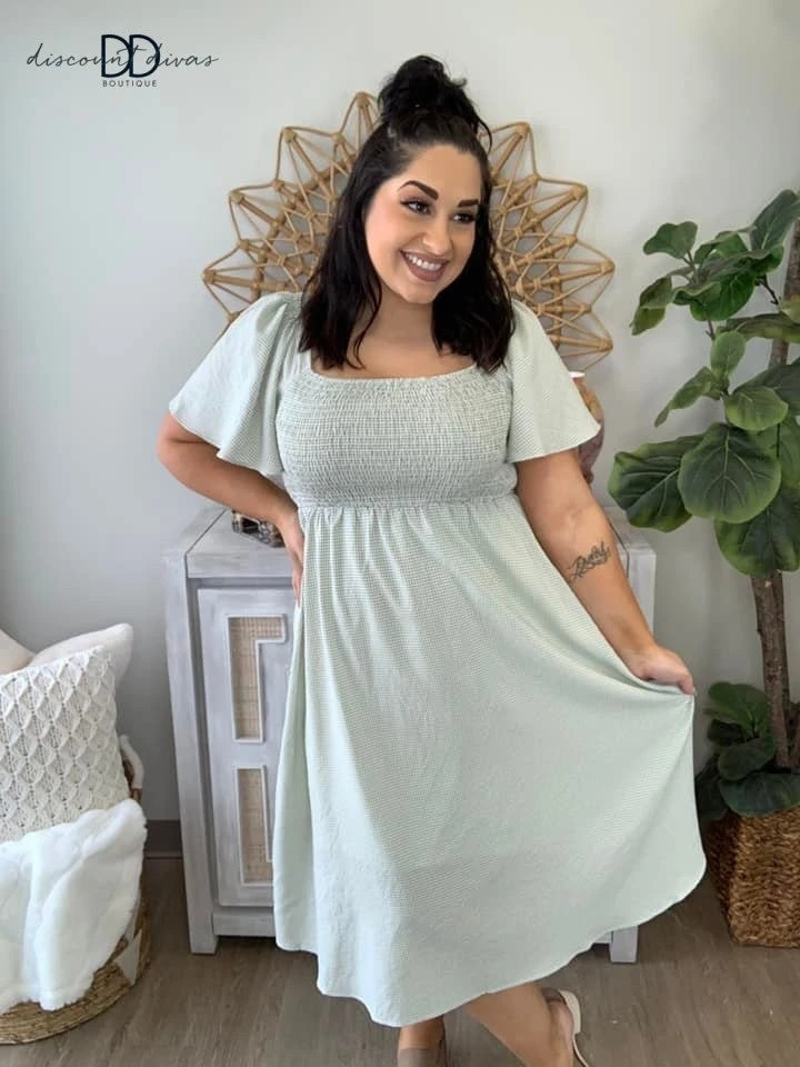 The “Precious Days Dress” has arrived! This super flattering midi dress belongs in your wardrobe! With the smocked detail and flare design, you can’t go wrong! Be sure to snag one while you can!