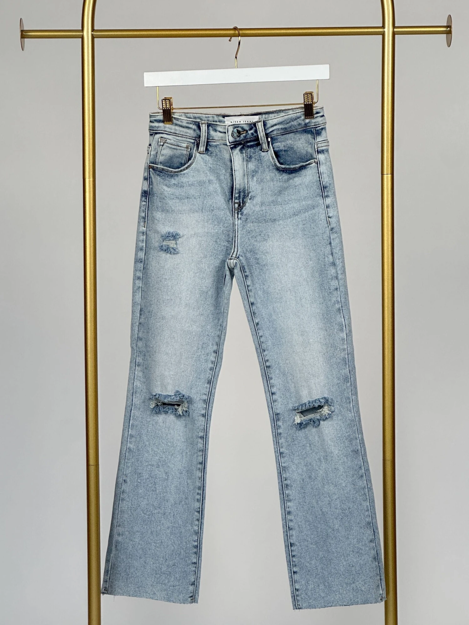 Features: High Rise, Straight Leg, Raw Hem