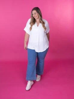 Erin is 5’9, 36C bra, typically wears size L/XL in tops and 14/16 in denim. Wearing size 1X