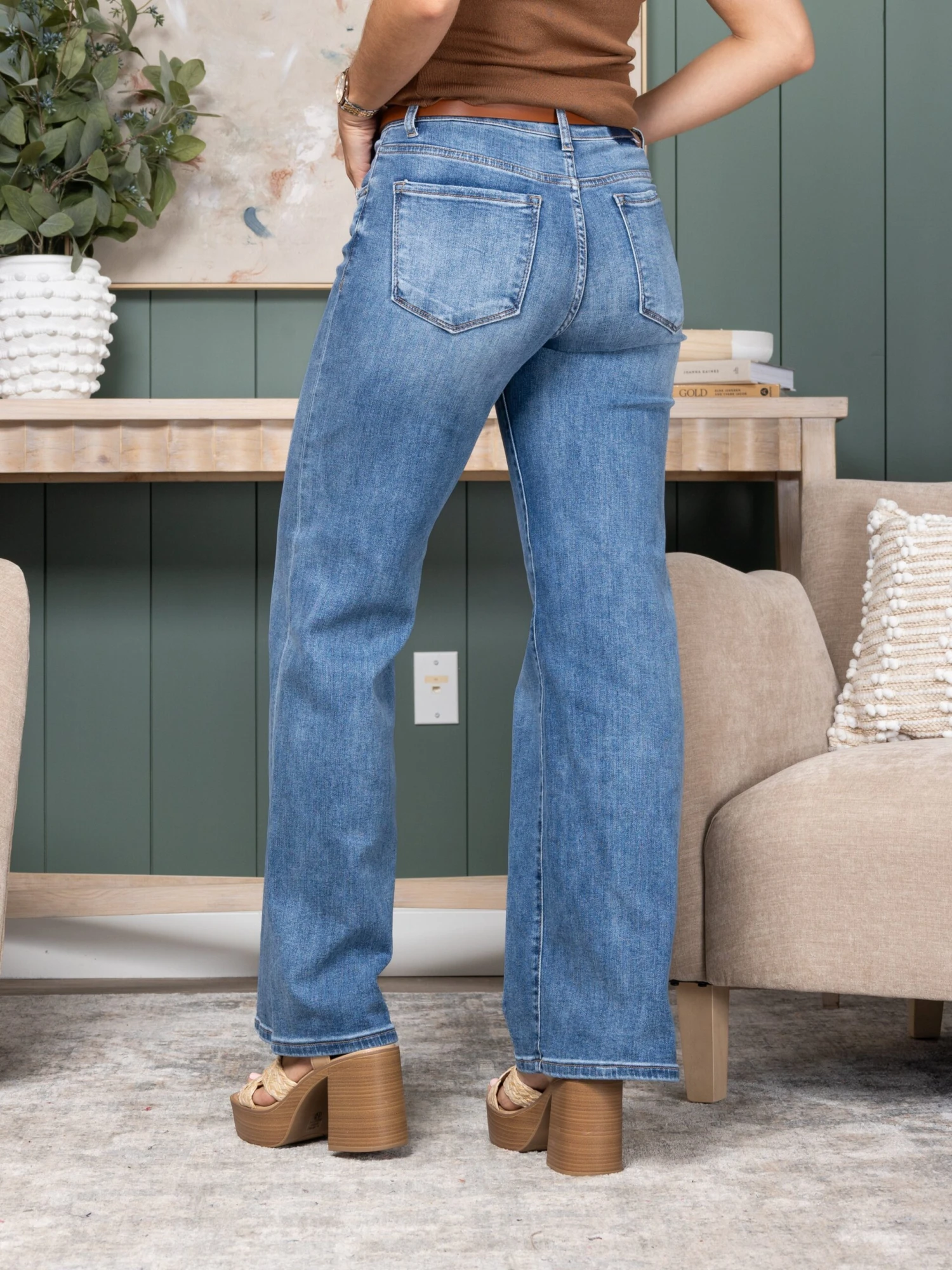 Features: Button Fly Waist, Pockets, Wide Leg Bottom