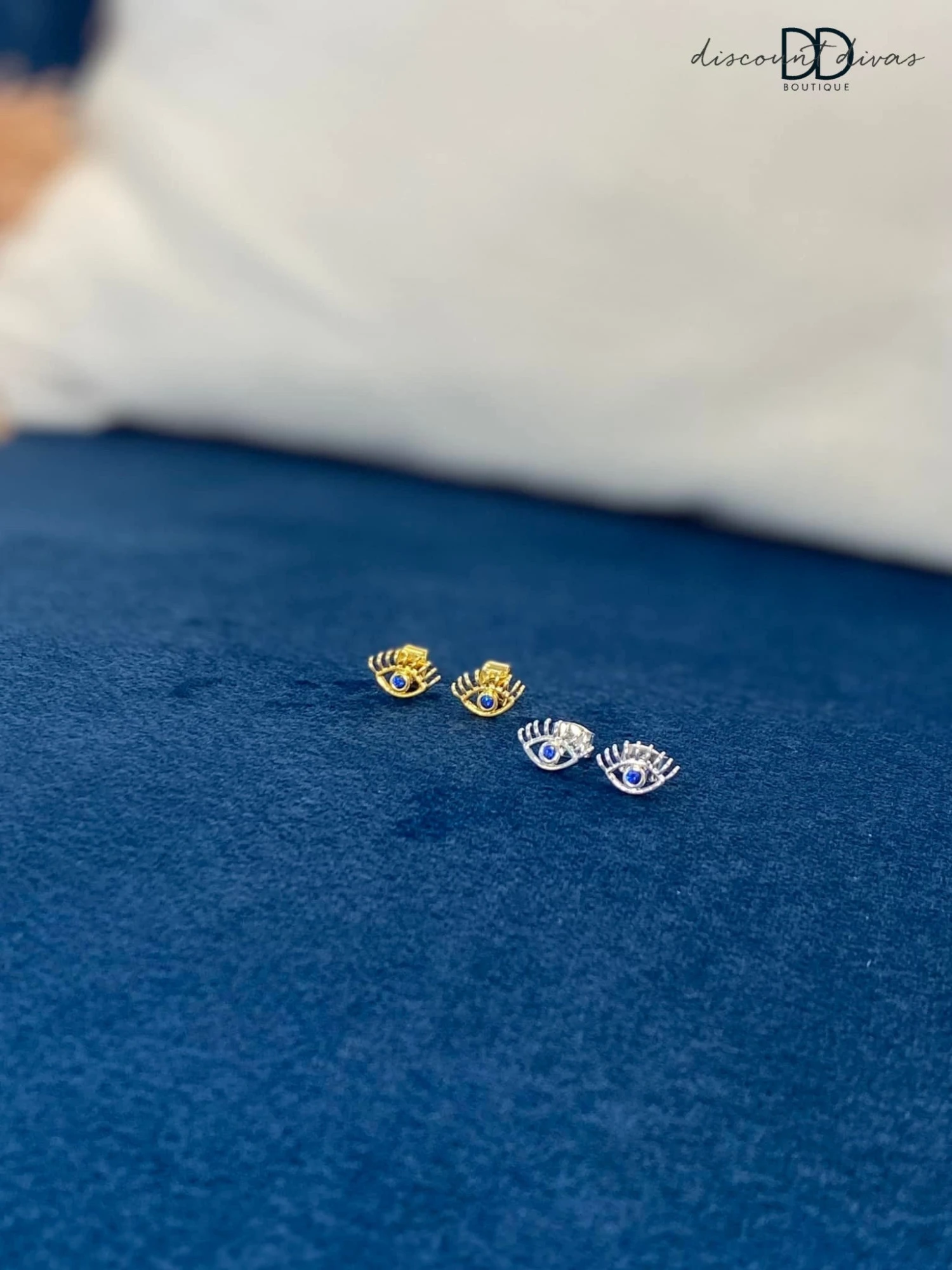 Features: Evil Eye, Sapphire, Stud, Earring, Cubic Zirconia