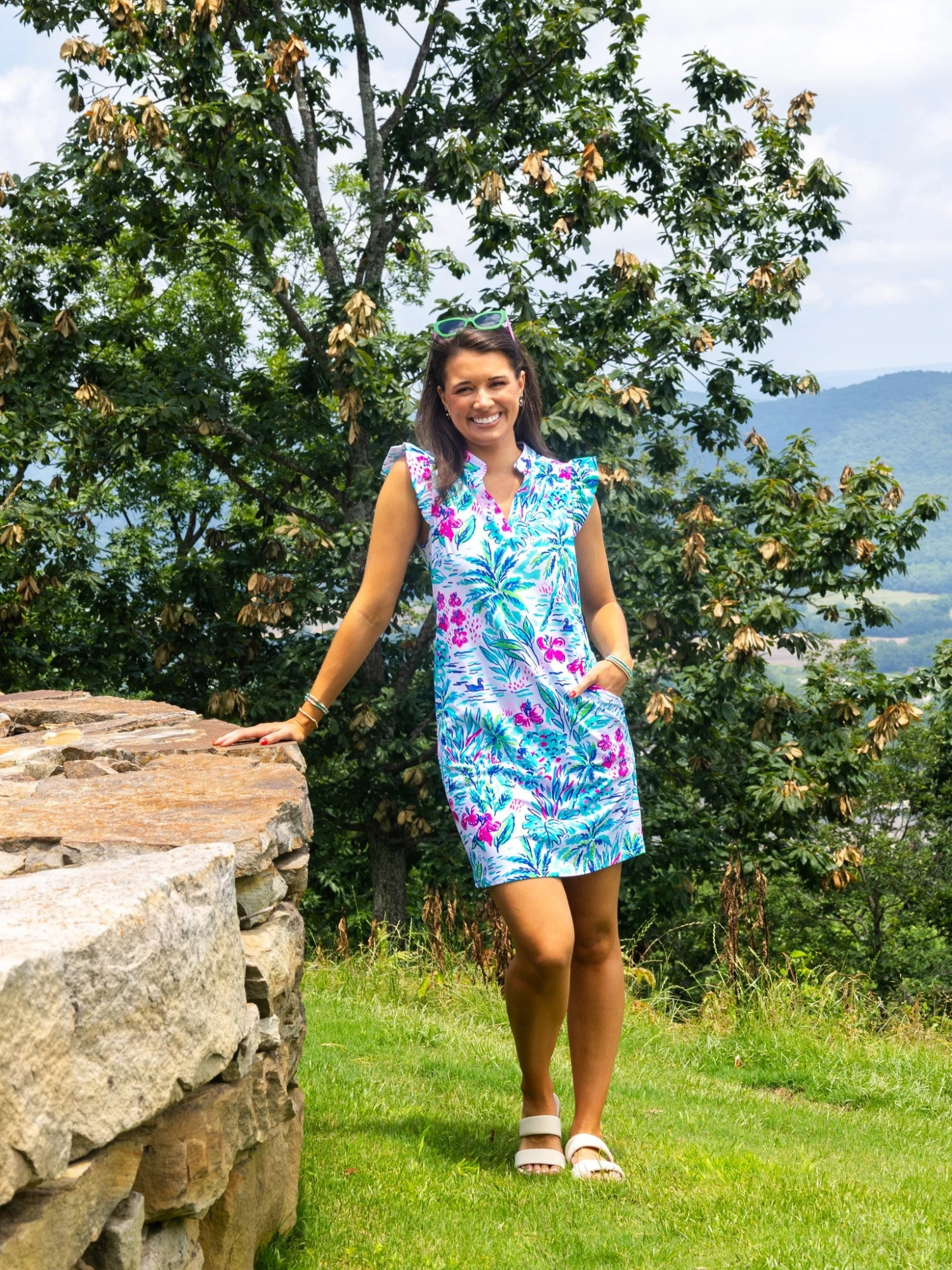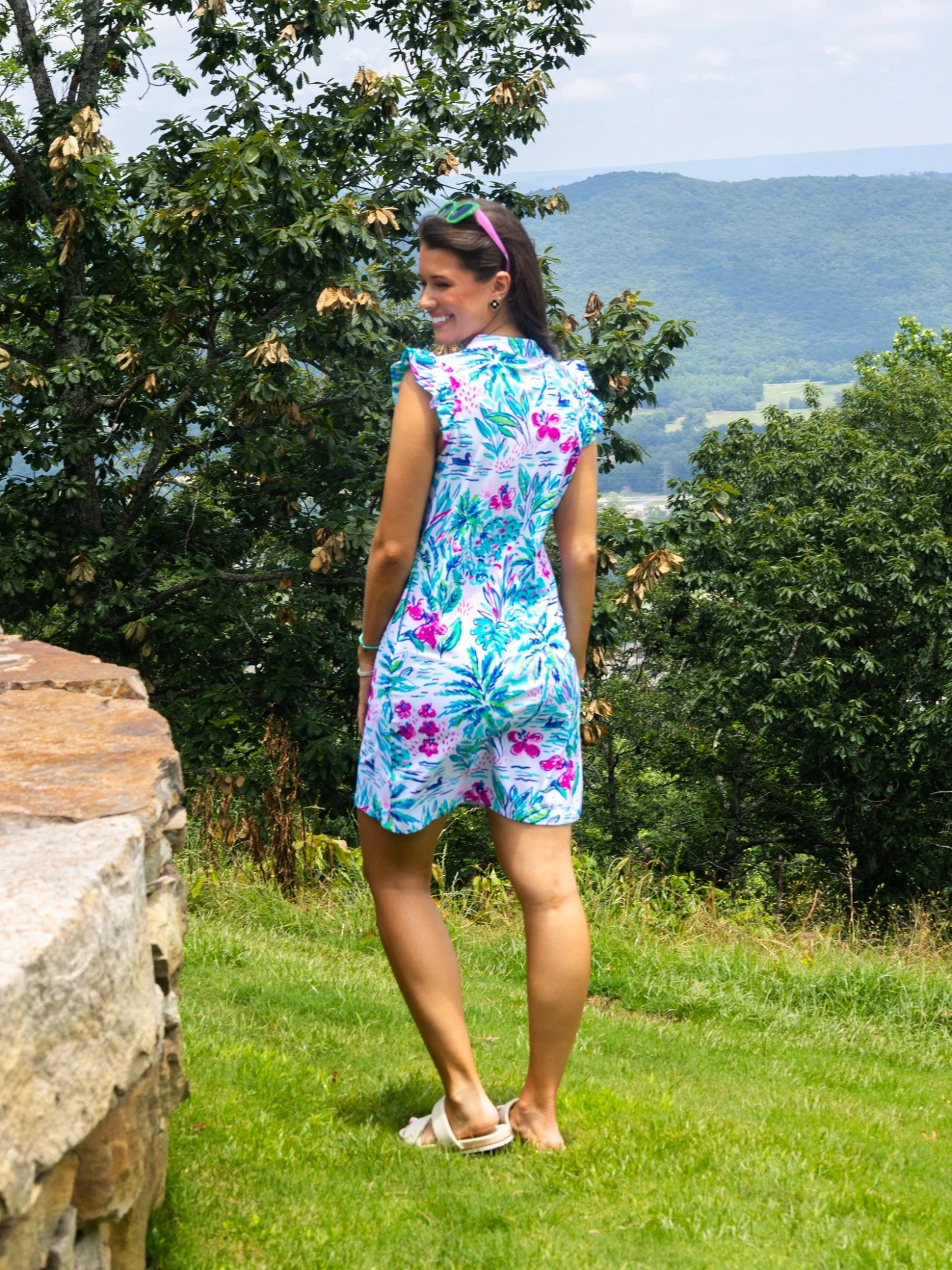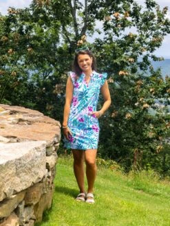 Features: Split Neck, Ruffle Sleeves, Pockets, Printed