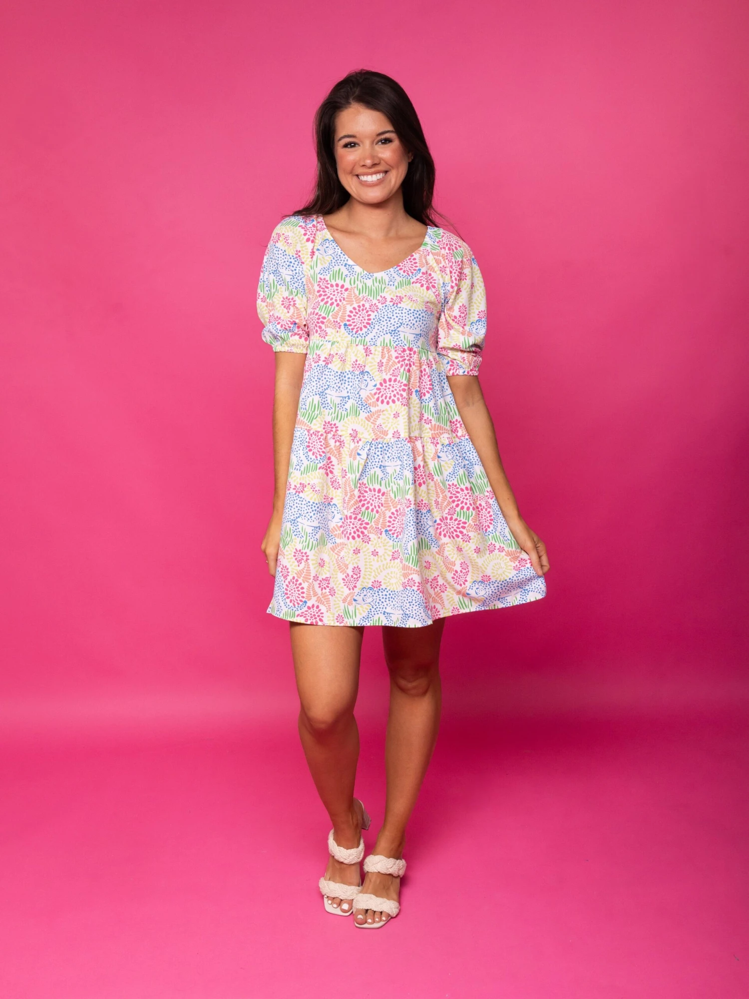 Do you see cute the leopards on this vibrant dress?!Absolutely GORGEOUS! Dress it up with heels or down with sandals!