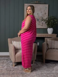 Features: Side Slit, Sleeveless, Striped