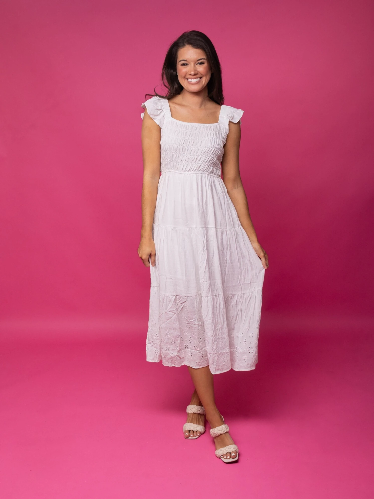Features: Tiered, Smocked, Eyelet Hem