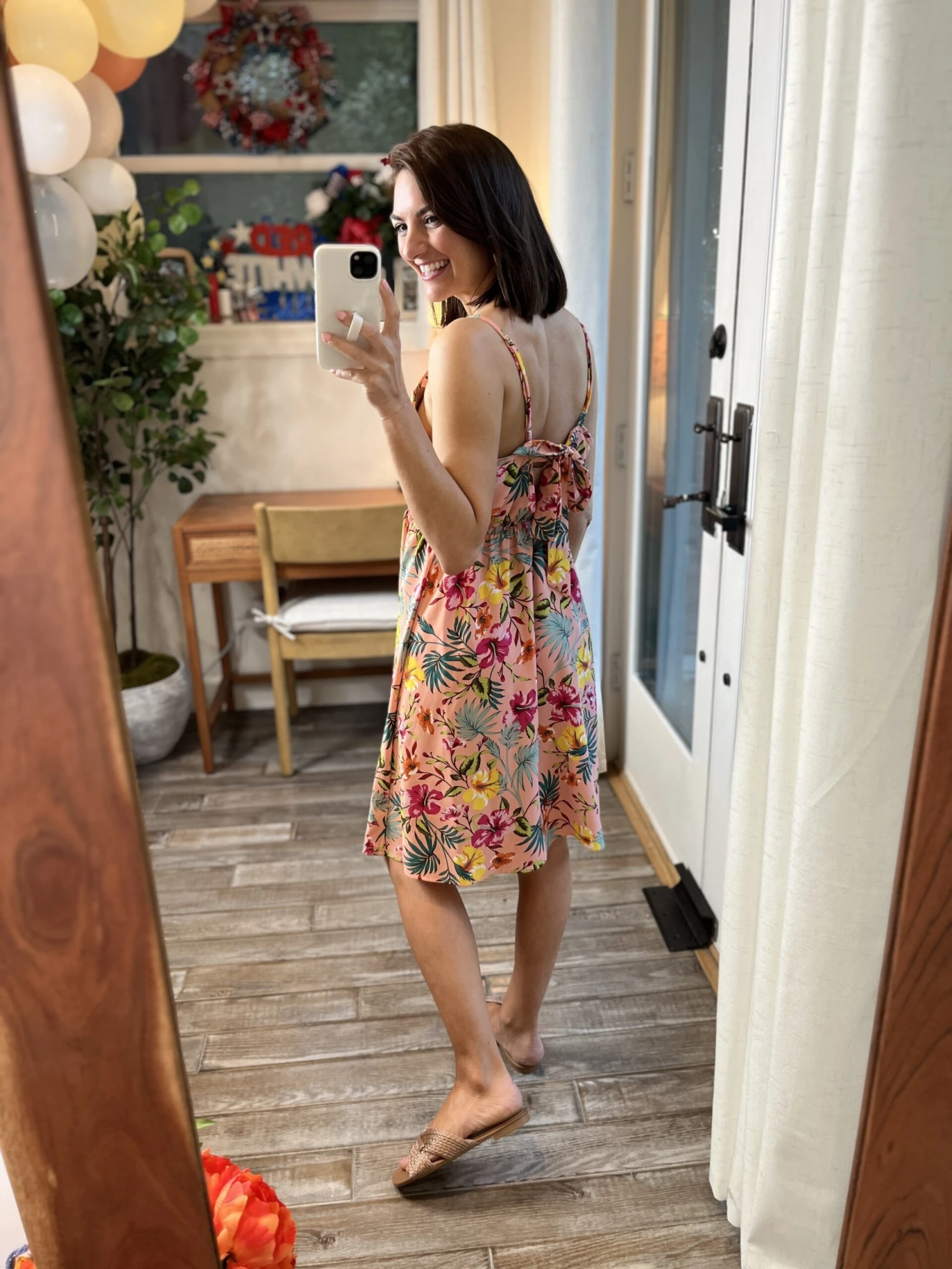 Features: v-neck, tie in the back