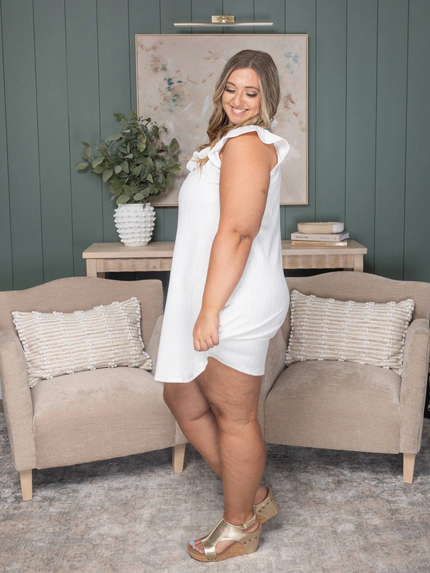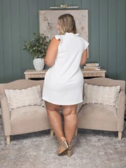 Features: V Neck, Short Ruffle Sleeves, Pockets