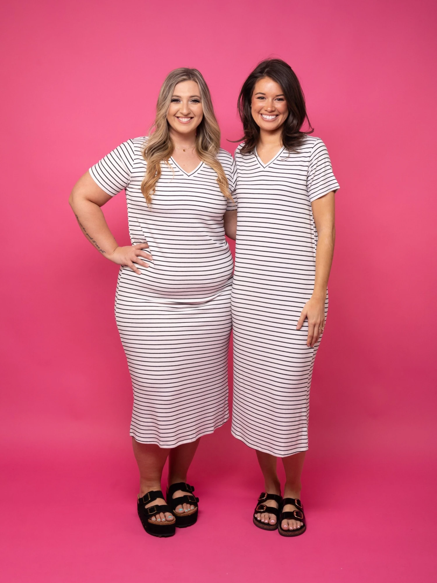 The comfort is of this timeless piece is truly unmatched! The perfect striped dress for those warm days! Snag now to add some casual elegance to your closet!