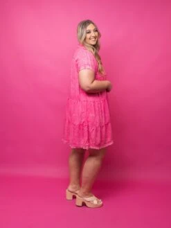 Features: Short Sleeves, V Neck, Tiered, Raw Hem