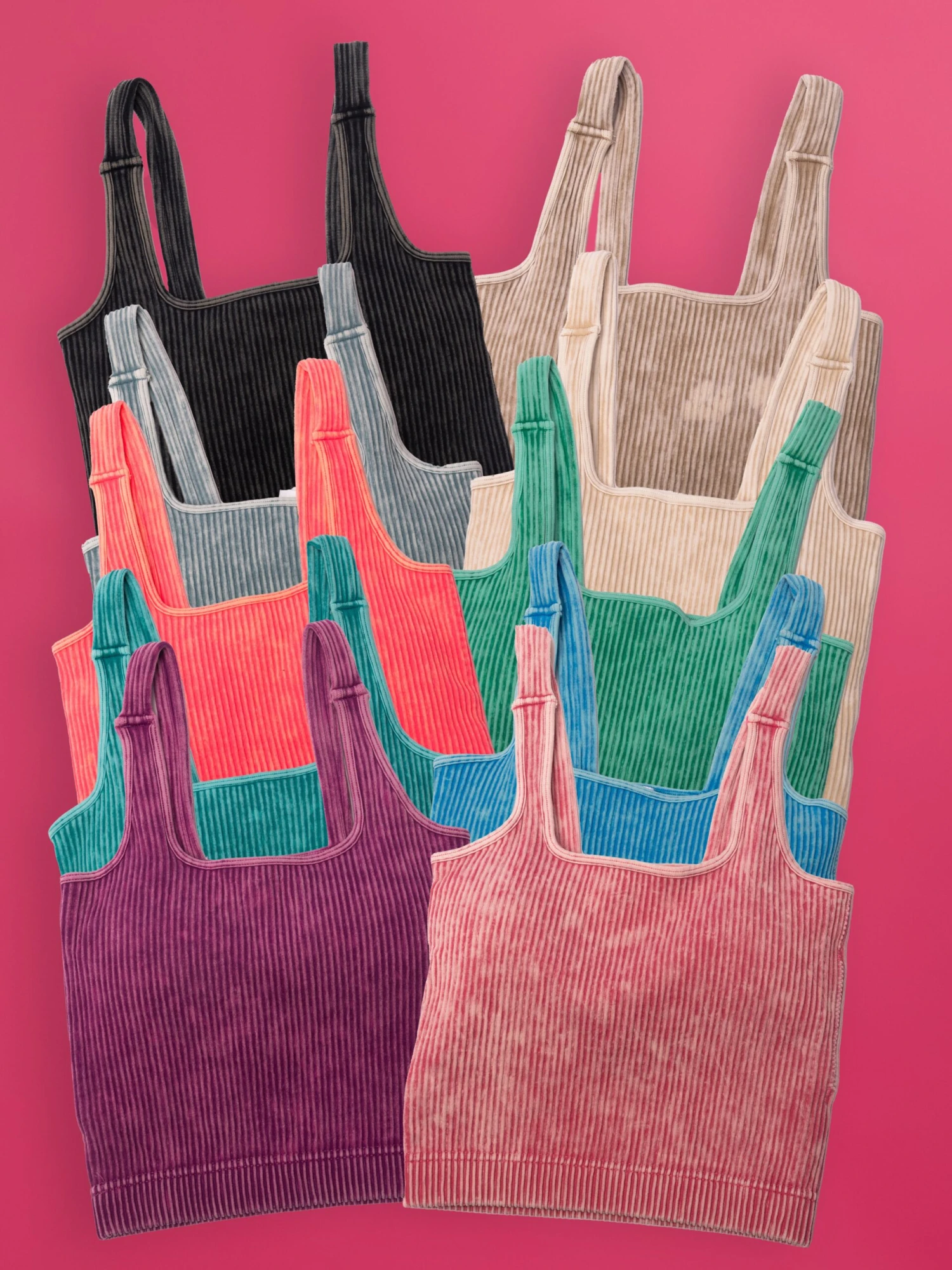 Features: Ribbed, Square Neck, Padded, Acid Wash